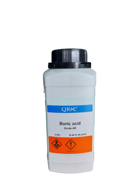 Synonyms : - Grade : AR CAS Number : 10043-35-3 EC number : 233-139-2 Molecular Formula : H3BO3 Formula Weight : 61.84 g/mol Density : 1.51 g/cm3