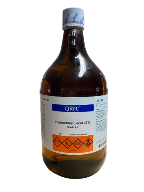 Synonyms : - Grade : AR CAS Number : 7647-01-0 EC number : 231-595-7 Molecular Formula : HCl Formula Weight : 36.46 g/mol Density : 1.0-1.2 g/cm3